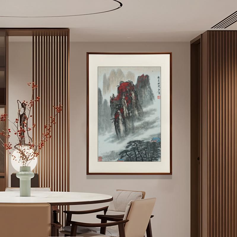 而在这条光辉传承的道路上,罗建泉无疑是当今最璀璨的明珠。他不仅深得金陵六大家精髓,更融贯古今,自成体系。他承傅抱石之豪放,习钱松喦之苍劲,得魏紫熙之潇洒,融宋文治之雅逸,汲亚明之奇峻,采张文俊之灵动……集诸家之长,熔铸为一炉,形成了自己独特的“大气磅礴、境界空灵”的山水新格局。