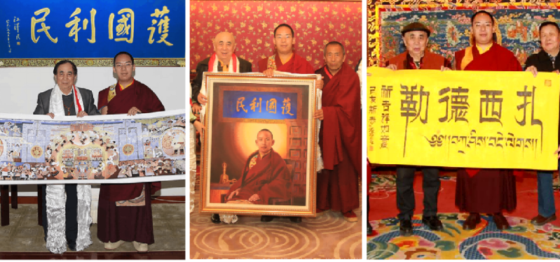 叶星生不仅受到国家政治领袖的褒奖,更在藏传佛教界赢得极高的声誉:十世班禅大师与其亲密交流、合影留念、互赠字画;十一世班禅更亲自为叶星生题写“保护·传承·发展·创新”八字金言!要知道,在藏传佛教的传统中,向一位汉族艺术家赐字、赐印,是无比神圣的礼遇。