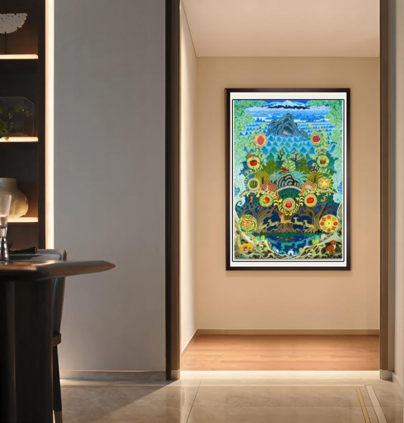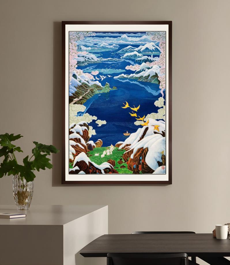 他被尊称为“中国布面重彩画开山鼻祖”,他的作品成为后世新唐卡创作的范本,无数艺术家争相学习,却始终无法超越!他的布面重彩,不是工艺技巧的炫技,而是民族精神的视觉升华,是对天地自然、信仰文化、国家力量的深刻表达。正如业内所言:“没有叶星生,就没有当代唐卡的现代转型与国家表达。”