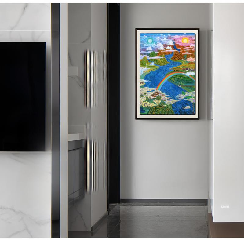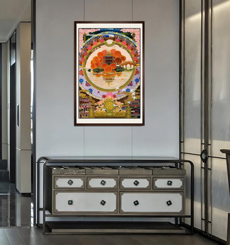 它们不仅成为中外元首访问西藏厅时的背景画面,更成为国家层面的文化代表,象征着中华民族团结与信仰的精神殿堂!在国家最庄严的场所,长期展出一位艺术家的原作,这种荣耀,全中国,仅此一人——叶星生!