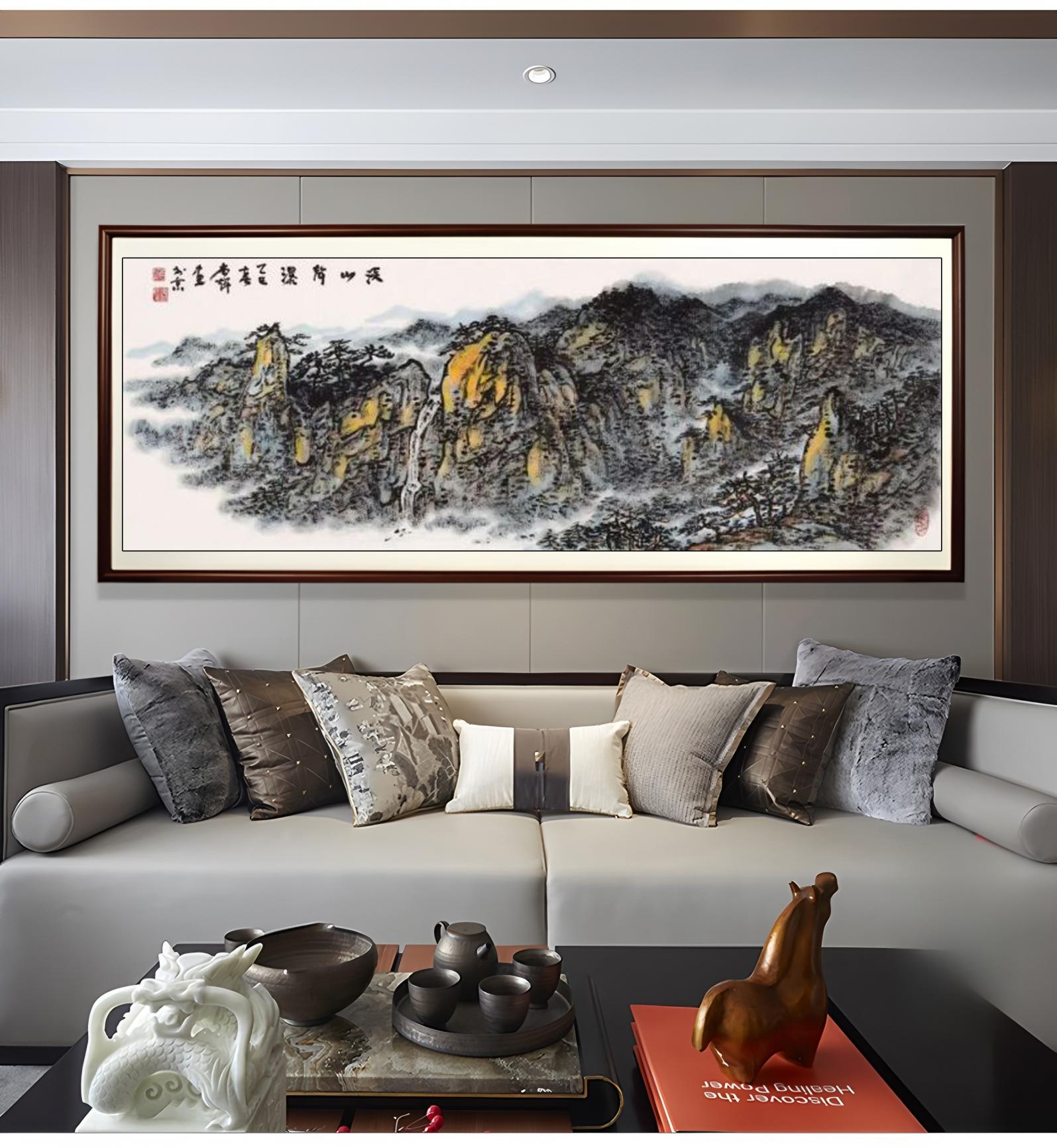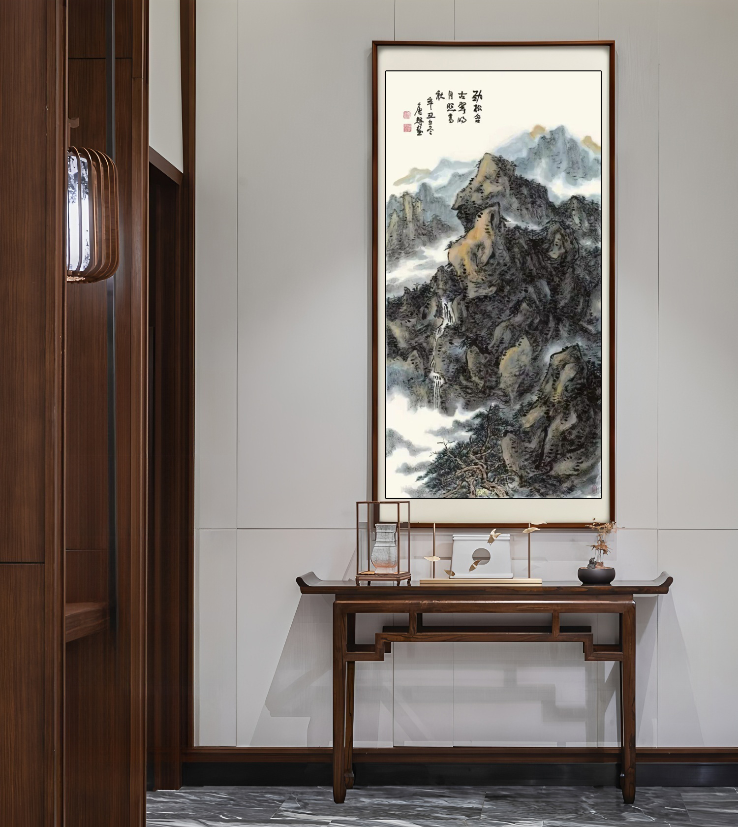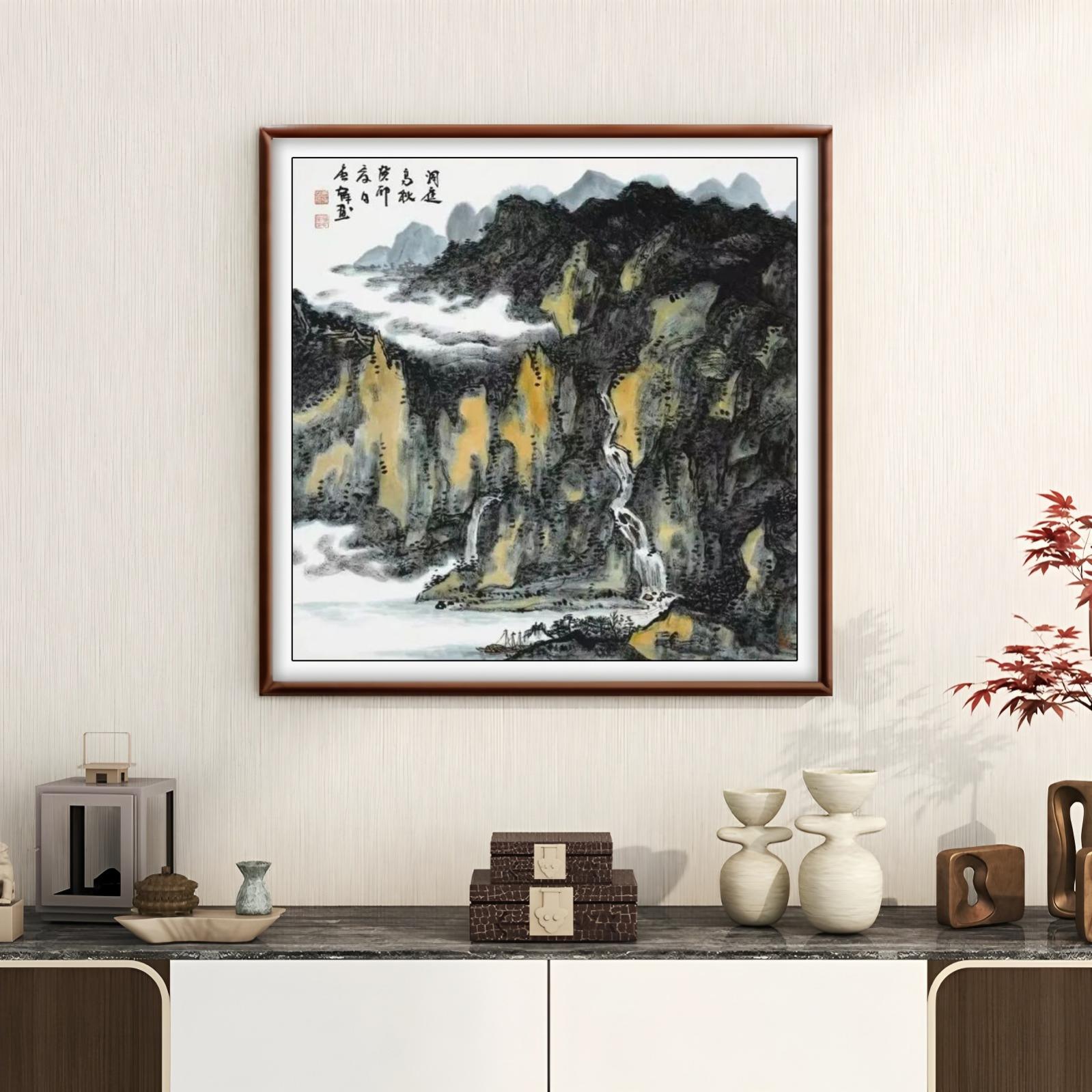唐辉教授的山水画,有着独特的厚重与深邃。他的山,是铁骨铮铮的脊梁,是中华民族亘古不屈的精神;他的水,是奔腾不息的血脉,是五千年文明川流不息的象征。在他的《大江东去》中,群山巍峨,江流浩荡,墨色的浓淡对比仿佛奏响了时代的交响曲。这不仅是一幅山水画,更是一种精神宣言,宣告着中华民族自强不息、勇立潮头的气概。