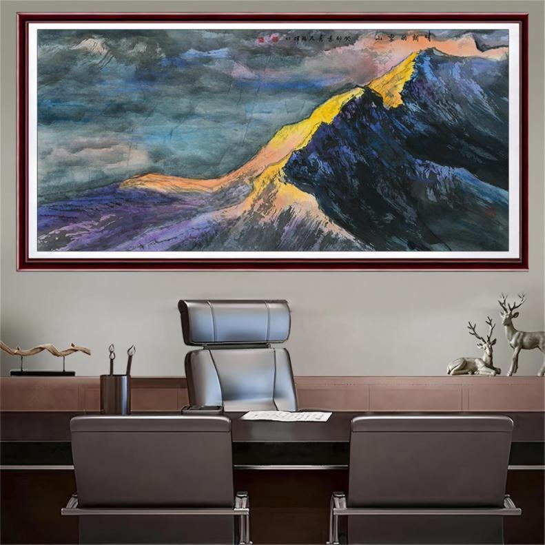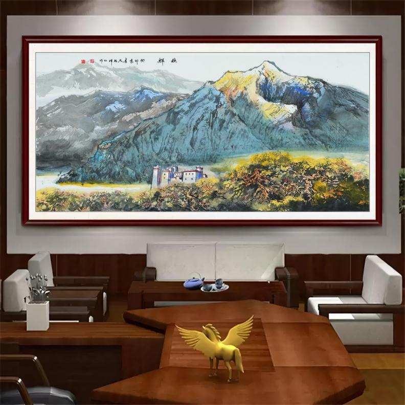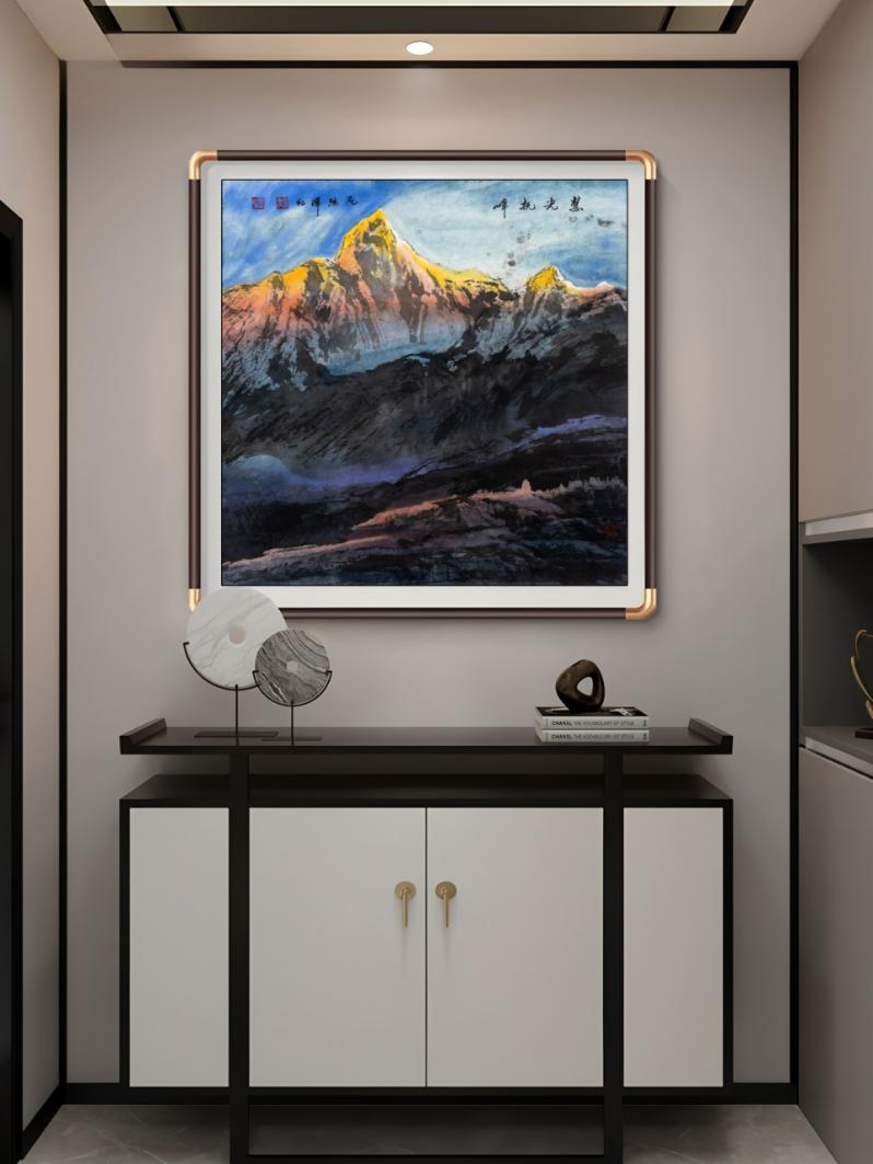 中国山水画流传千年,但他做到了前所未有的突破。他以唐卡为根基,融合汉画笔墨的骨力、西画光色的层次、藏族文化的精神性,创造出一种全新的艺术样式:“雪域山水”。他的山,是雪山的庄严;他的水,是高原的灵动;他的云,是信仰的载体;他的色彩,是天地的和鸣。这种独一无二的艺术语言,让世界在看中国画时,不再只是水墨的柔美,而是精神的厚重与民族的力量!