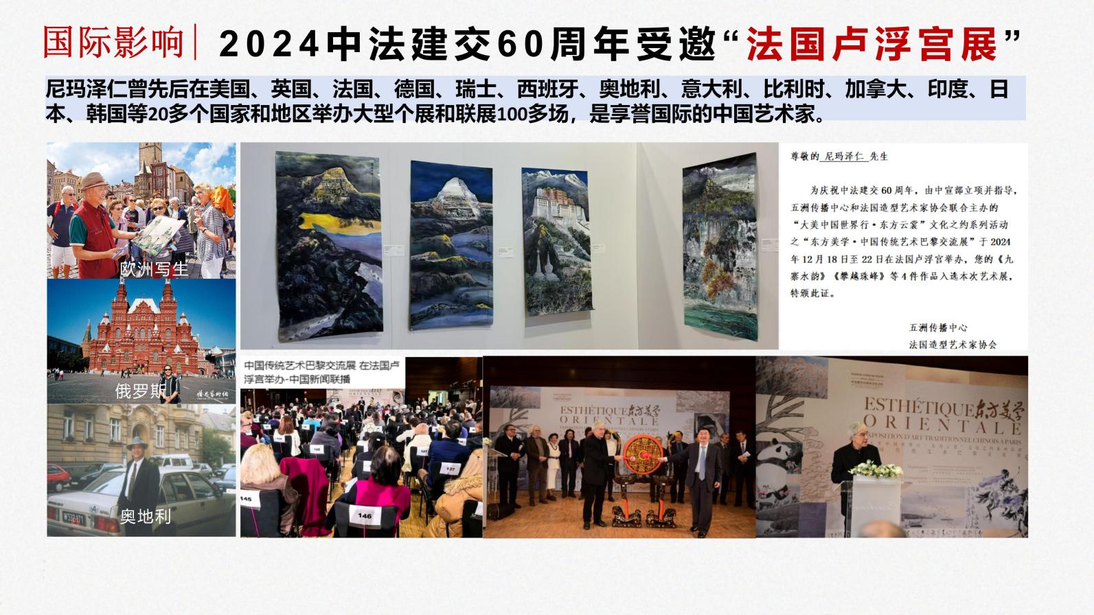 尼玛泽仁的艺术,不仅让中国人自豪,也让世界惊叹。在法国卢浮宫的国际艺术展上,他的作品《佛光照雪域》以强烈的视觉震撼与哲学内涵,吸引了来自全球的艺术评论家。西方评论家称他为:“能将宗教情感化为哲学诗的东方智者。”