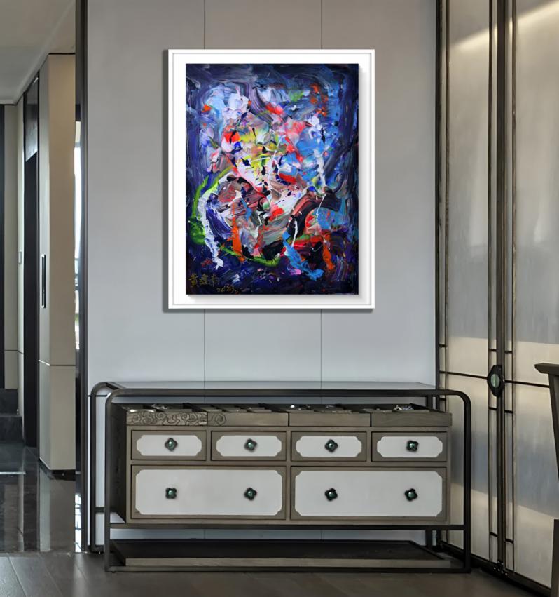 黄建南教授的艺术风格独树一帜:宏大气象:作品气势恢弘,情感饱满,视觉震撼力极强;色彩语言丰富:红、金、蓝等强烈色彩交织,营造出极强的节奏感与空间感;融合创新:东方意境与现代艺术语言完美结合,视觉冲击力与思想深度兼具;