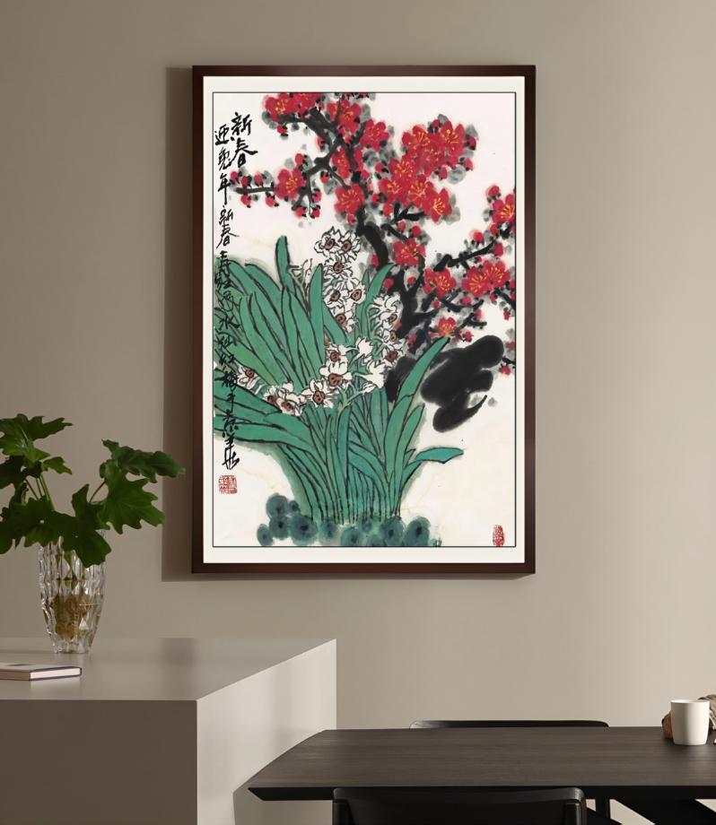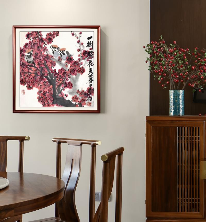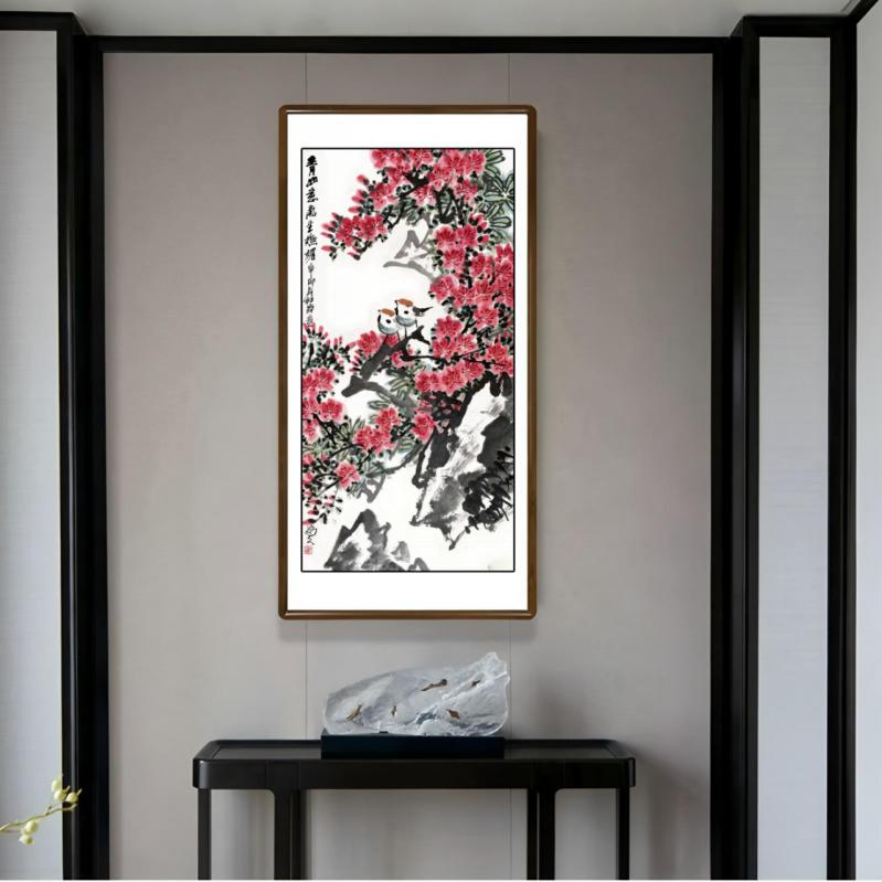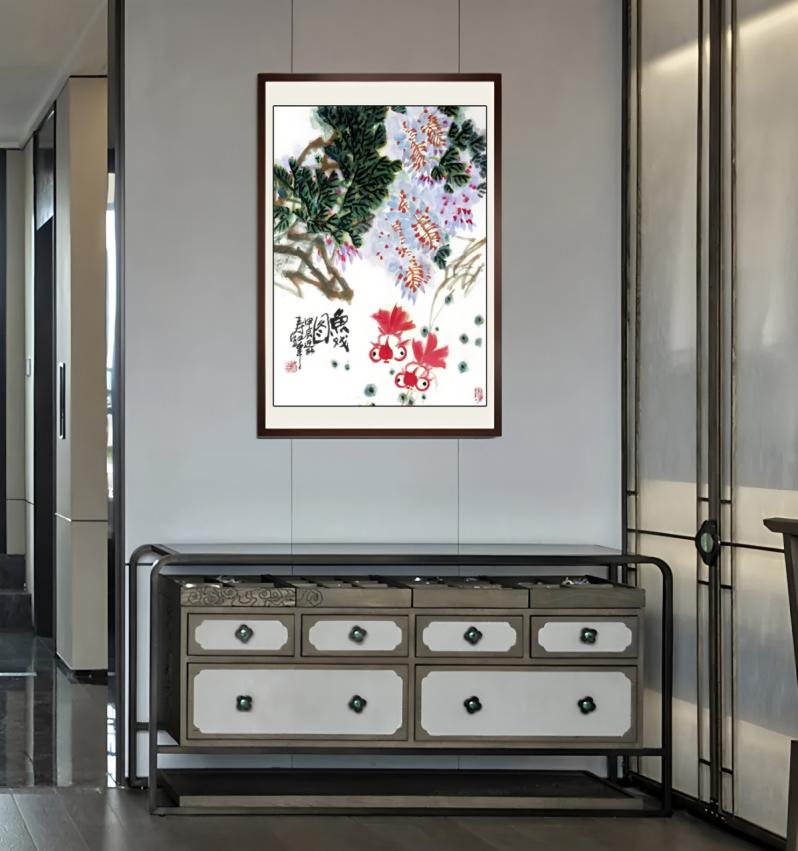 庄寿红的画风,以“红”为魂,兼具书卷气与民族气。她的笔墨刚柔并济,色彩浓烈却不失典雅,既继承了李苦禅、潘天寿的雄浑,又融入女性独有的温婉与情感张力。每一幅作品,都像在讲述一个中国女性艺术家的心灵史诗,充满力量与灵魂的震撼。