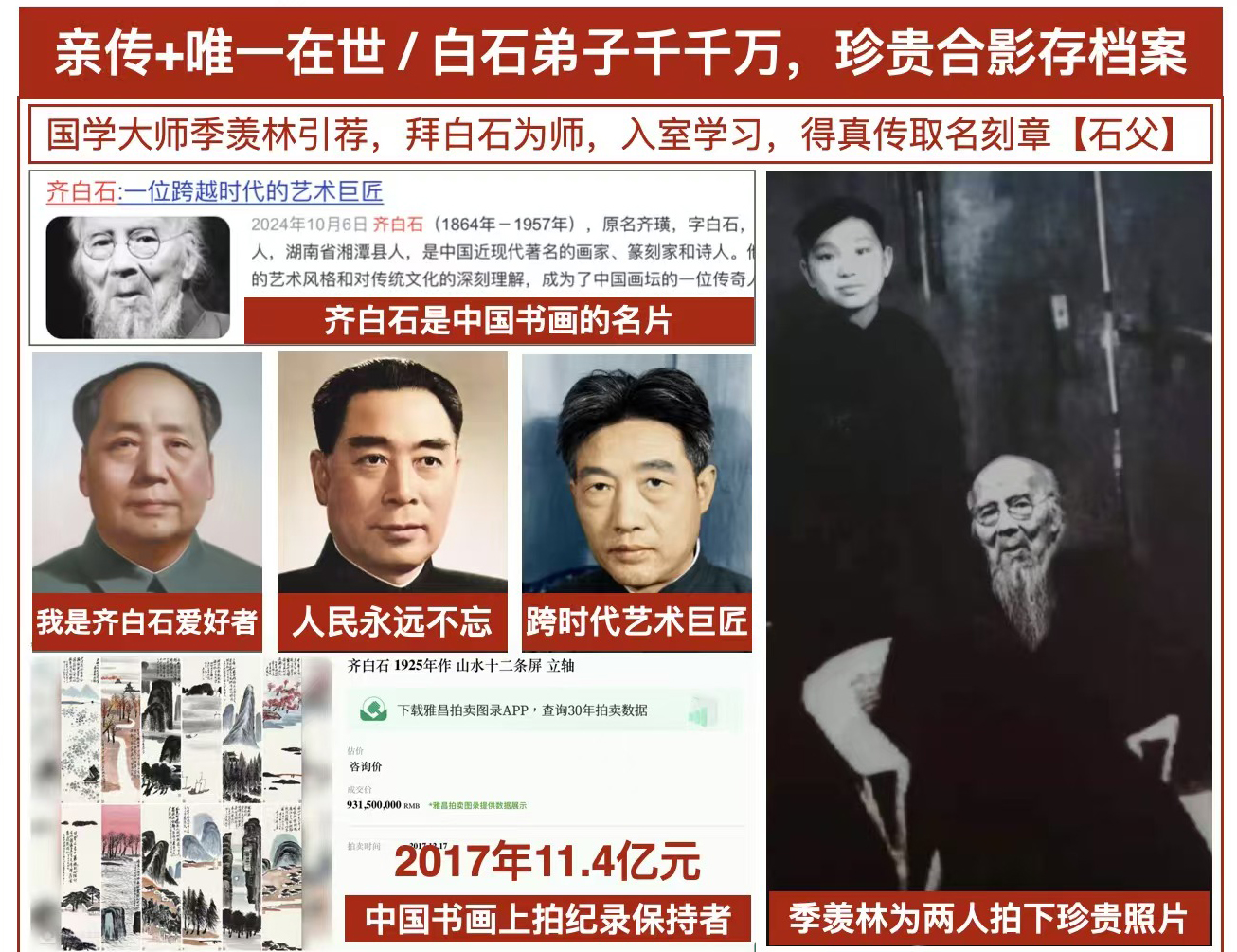 在世界艺术史上,有些名字因技艺被铭记,有些因传承被尊崇,而 刘永泰教授,则因承载齐白石正统血脉、兼具国家权威与市场传奇,而成为不可复制的传奇人物。他不仅是齐白石唯一在世亲传弟子,当代“石父”,还是国家艺术三院长,93岁高龄仍矢志守护齐派艺术的巅峰。他的存在,意味着中华艺术在世界舞台上的顶尖象征,是历史、文化、市场与精神的完美融合。