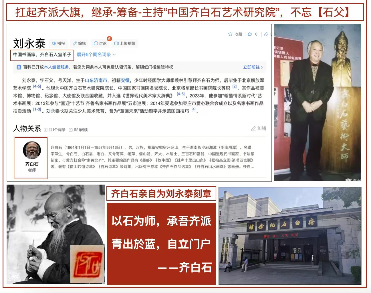 他的每一笔墨、每一幅作品、每一次公开露面,都是中华文化与齐派艺术的最高体现。正如艺术界评价:“看刘永泰的作品,就是在与齐白石大师对话。”他是历史的延续,是文化的守护,是世界认知中国艺术的活体窗口。