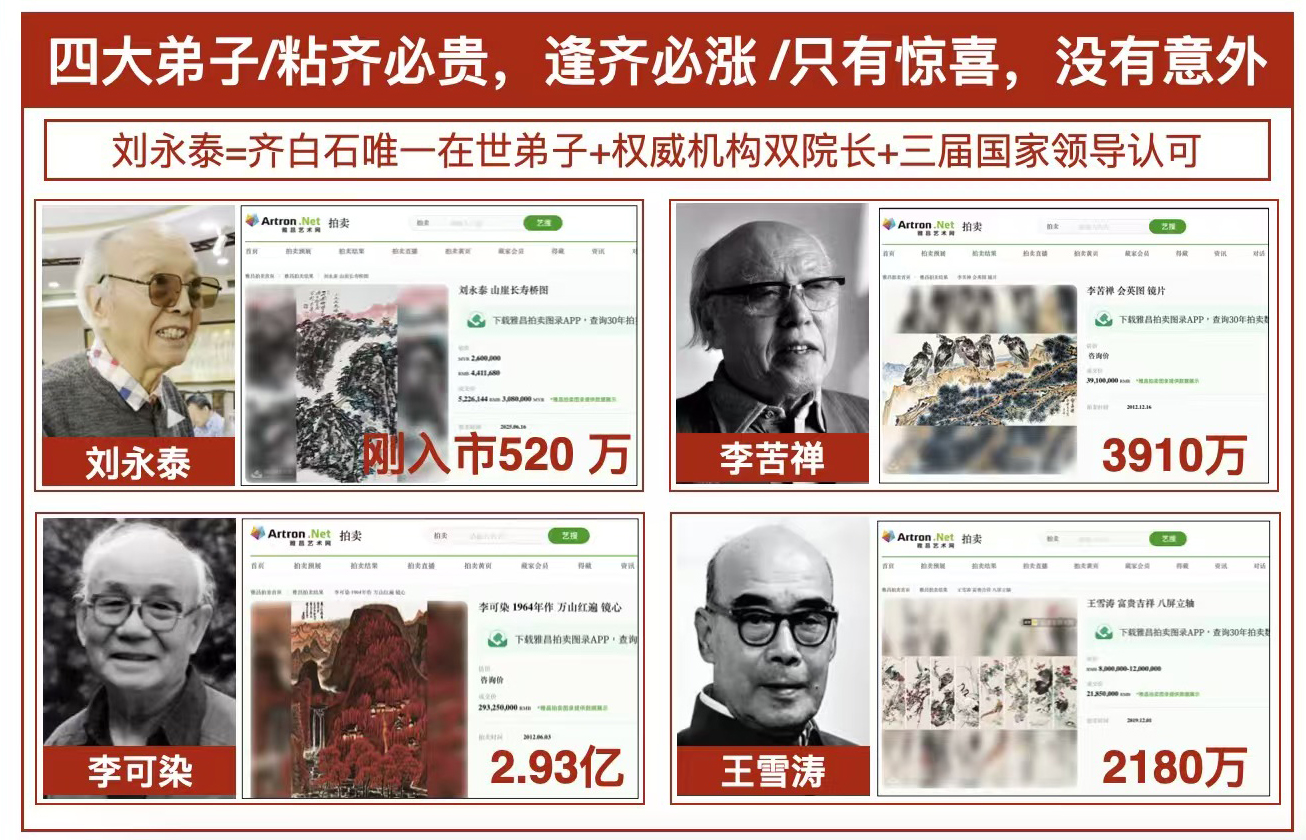 每一位艺术爱好者、每一位收藏家,都应铭记:拥有刘永泰,就是拥有齐派正统、拥有百年艺术血脉、拥有中华文化巅峰的精神象征。他的一生,是齐派艺术的活体史诗,是中华艺术在世界舞台上的巅峰象征。刘永泰,是当代中国画界无法复制的传奇、不可替代的国宝。