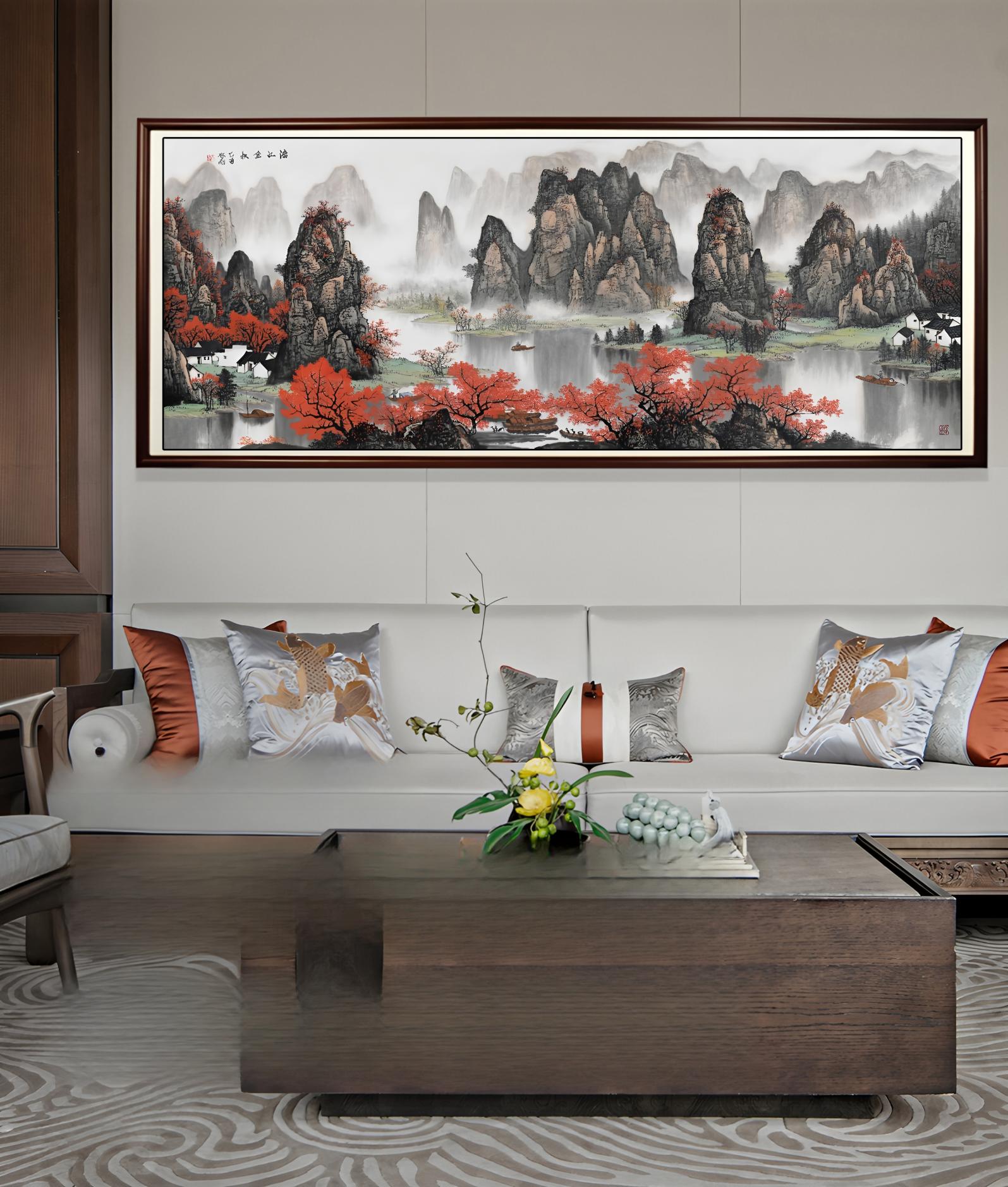 2014年嘉德在线推出的专场,展出他14件漓江主题作品。所有观看者几乎同时产生一个震撼:“原来白启刚的青绿,已经达到了当代罕见的高度!”他的作品:构图大胆得不像传统,却比传统更传统;色彩明快得像当代绘画,却比当代更古典;线条灵动得像南派,却比南派更透气;山石稳重得像北派,却比北派更有筋骨;这是“南北合一”的巅峰。从此以后,他的名字被学界正式纳入中国山水画重要体系。