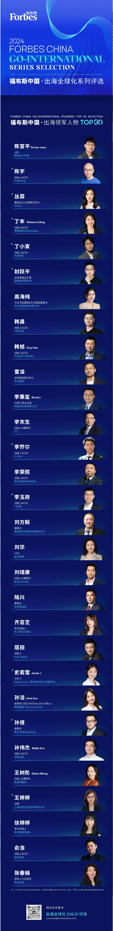 以下为“2024福布斯中国 · 出海全球化系列评选”结果: