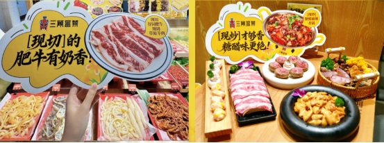 此外,它今年还打出四个关键词——现炒、现切、手作、鲜货。例如,现炒的糖醋麻辣香锅和香辣麻辣香锅突出烟火气,安格斯谷饲肥牛和草原羊肉强调“现切”,用奶香建立记忆点;鲜货则是来自云南的山野菌菇、脆爽木耳等。